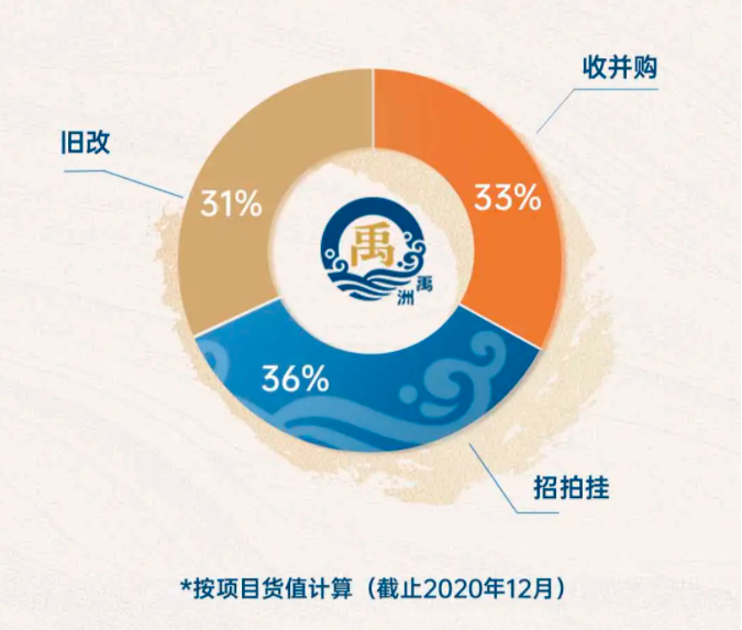 2020年禹洲集團(tuán)通過多種方式新增土地儲備貨值達(dá)1087億元,共計21幅土地。其中,通過收并購、舊改、招拍掛方式獲取的土地貨值分別占比33%、31%、36%,大幅降低土地獲取成本,而且新增的21幅土地中有3塊土地屬于舊改項(xiàng)目均位于粵港澳大灣區(qū)的核心城市,貨值達(dá)337億元,據(jù)悉其舊改項(xiàng)目均已進(jìn)入成熟期,即可快速轉(zhuǎn)化為可售資源。根據(jù)市場信息顯示,大灣區(qū)優(yōu)質(zhì)城市更新新增項(xiàng)目土地成本僅為招拍掛土地成本的20%左右,這將為禹洲集團(tuán)帶來更加可期的利潤。