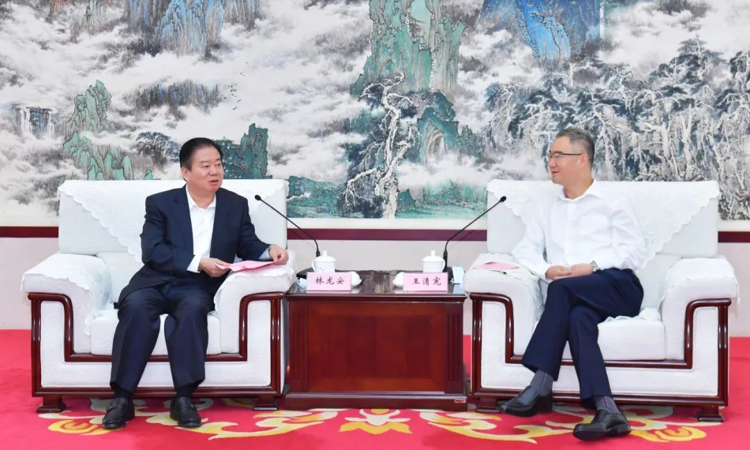 王清憲省長(zhǎng)(右一)與林龍安一行親切交談