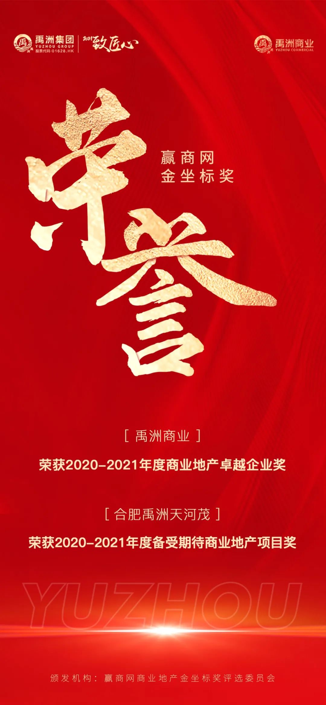 5月19日,以“循新不循常——這,就是中國商業(yè)”為主題的第16屆中國商業(yè)地產(chǎn)節(jié)在廣州隆重開幕。在“金坐標(biāo)”頒獎盛典上,禹洲商業(yè)憑借突出的表現(xiàn)榮獲“2020-2021年度商業(yè)地產(chǎn)卓越企業(yè)”獎項、合肥禹洲天河茂獲得“2020-2021年度備受期待商業(yè)地產(chǎn)項目”獎項。