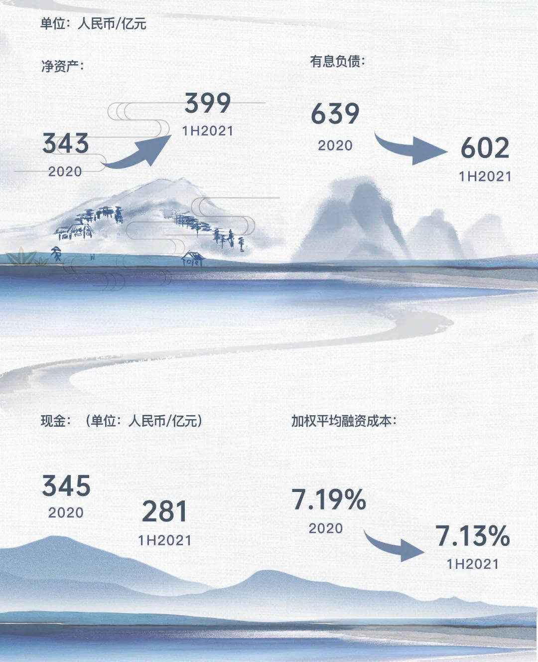 ●現(xiàn)金短債比為1.85倍,凈負(fù)債比率為80.42%,較2020年年底下降5.38個百分點,穩(wěn)居綠色檔位,剔除預(yù)收款之后的資產(chǎn)負(fù)債率約為73.98%,較2020年年底下降3.94個百分點,“三道紅線”全面達(dá)標(biāo)在望;