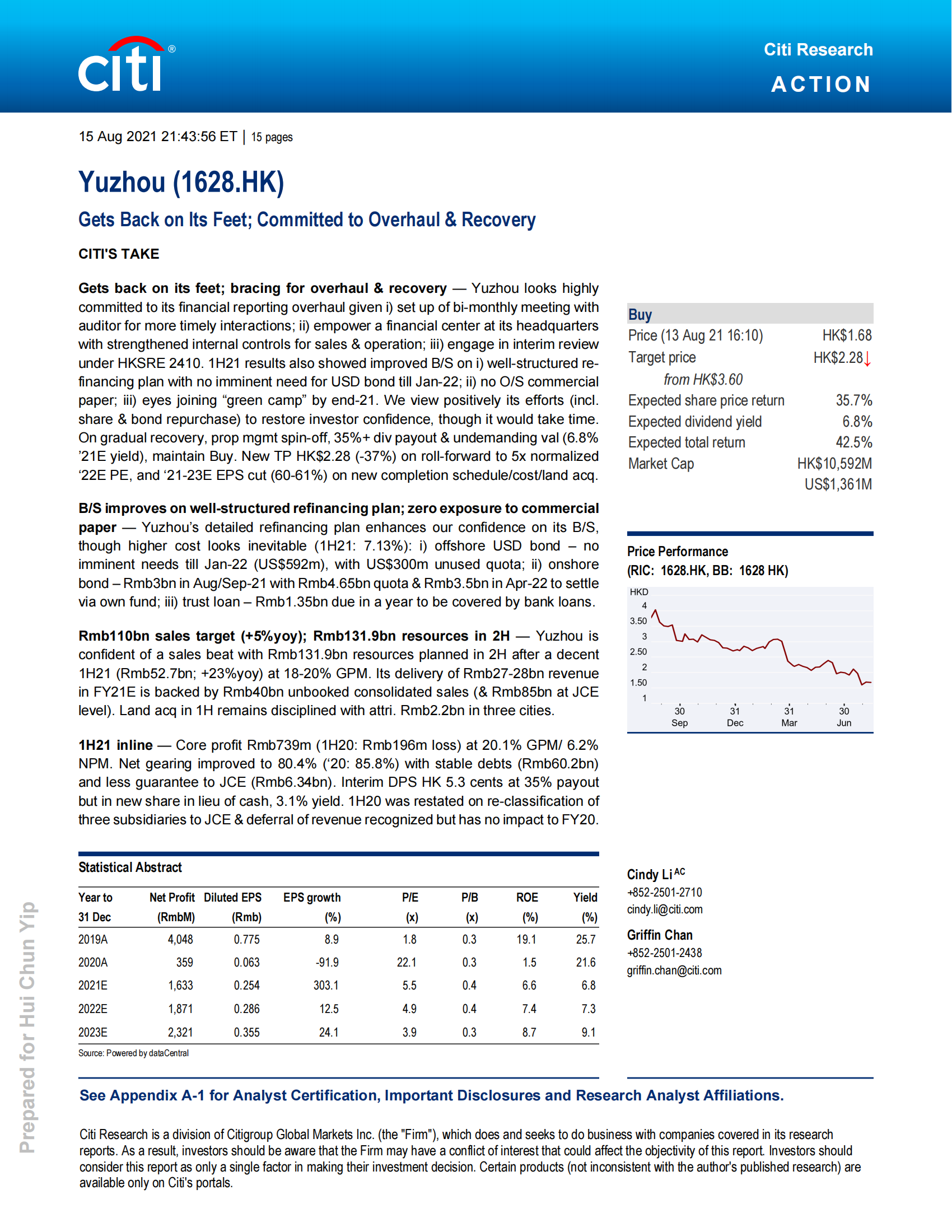 花旗|禹洲集團(tuán)(01628.HK) 上半年表現(xiàn)優(yōu)異 重拾投資者信心