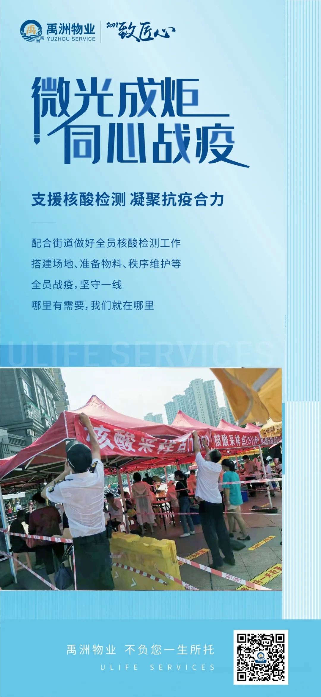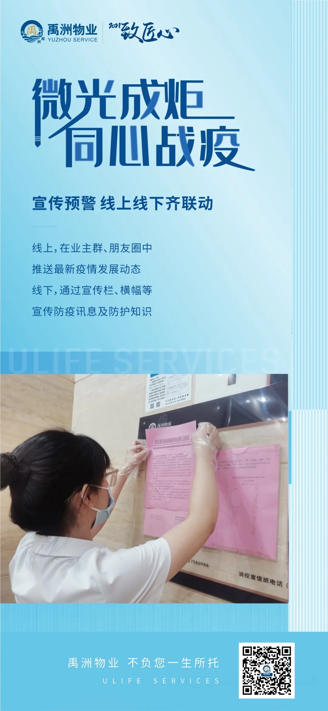 面對(duì)嚴(yán)峻的防疫壓力,禹洲物業(yè)全體工作人員堅(jiān)守一線,以“一方有難、八方支援”的強(qiáng)烈責(zé)任感和使命感積極貢獻(xiàn)禹洲力量,全力配合各級(jí)政府部門防疫抗疫工作要求,在第一時(shí)間制定行動(dòng)計(jì)劃,切實(shí)有效地開展各項(xiàng)防疫工作。