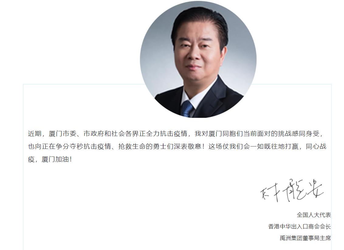 守望相助,禹洲集團(tuán)捐贈(zèng)100萬元支援廈門抗疫