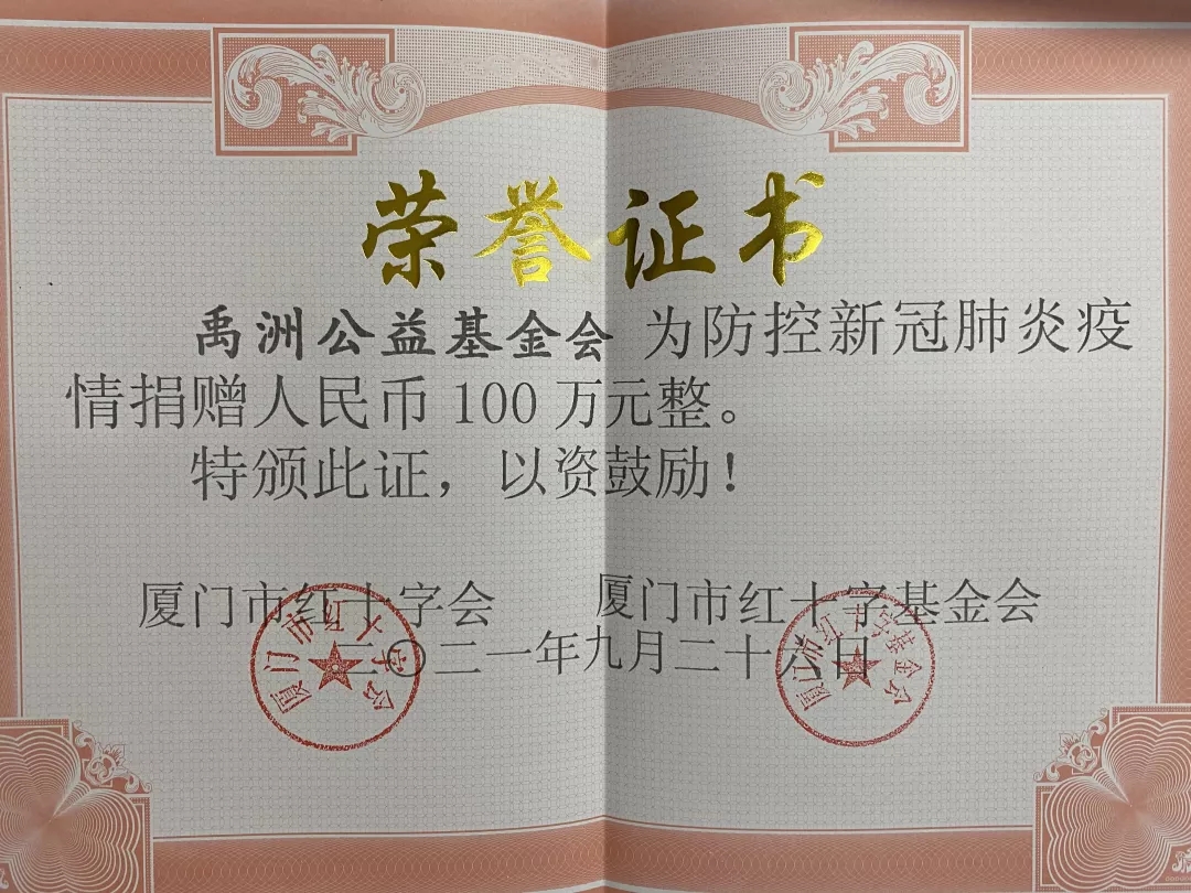 禹洲公益基金會(huì)向廈門市紅十字會(huì)基金會(huì)捐贈(zèng)100萬元