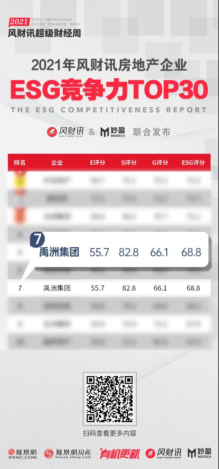 近日,在由鳳凰網(wǎng)、鳳凰網(wǎng)房產(chǎn)主辦的風財訊財經(jīng)周期間,禹洲集團憑借在ESG領(lǐng)域的優(yōu)異表現(xiàn),奪得中國房地產(chǎn)企業(yè)ESG競爭力TOP7的殊榮。