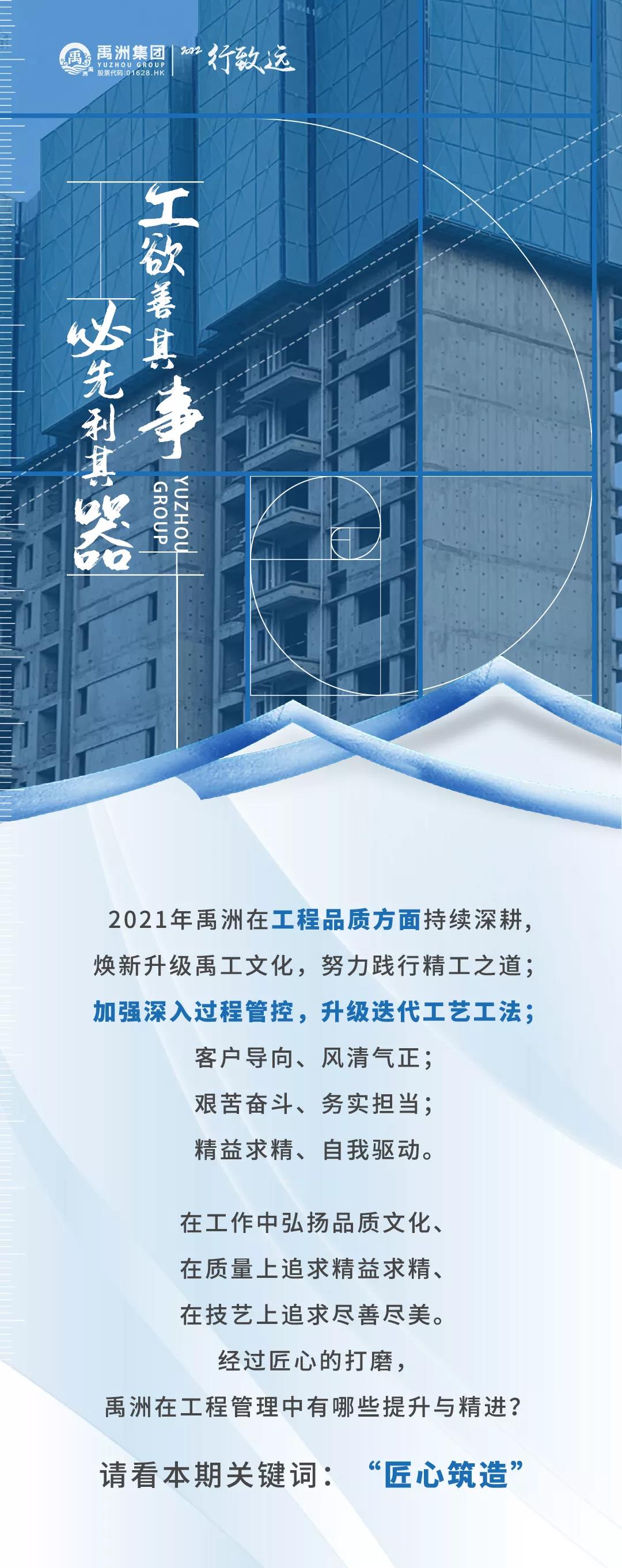 在房地產(chǎn)新的發(fā)展格局下,回歸產(chǎn)品、注重“品質(zhì)力”打造,才是未來的發(fā)展方向。2021年,禹洲圍繞“致匠心”的主題,穩(wěn)步推進(jìn) “匠心筑造”提升計劃的落地,弘揚(yáng)工程師匠心文化,夯實管理基礎(chǔ),落實精細(xì)化管控,力求持續(xù)的高品質(zhì)輸出。