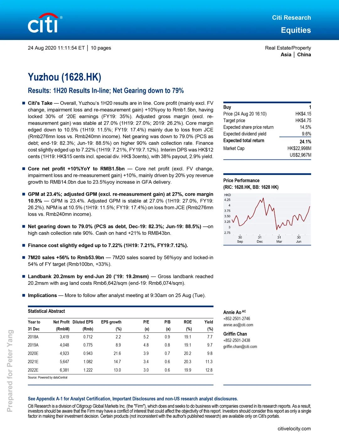 花旗 | 禹洲集團(tuán)(01628.HK):上半年業(yè)績優(yōu)異符合預(yù)期,重申“買入”評級