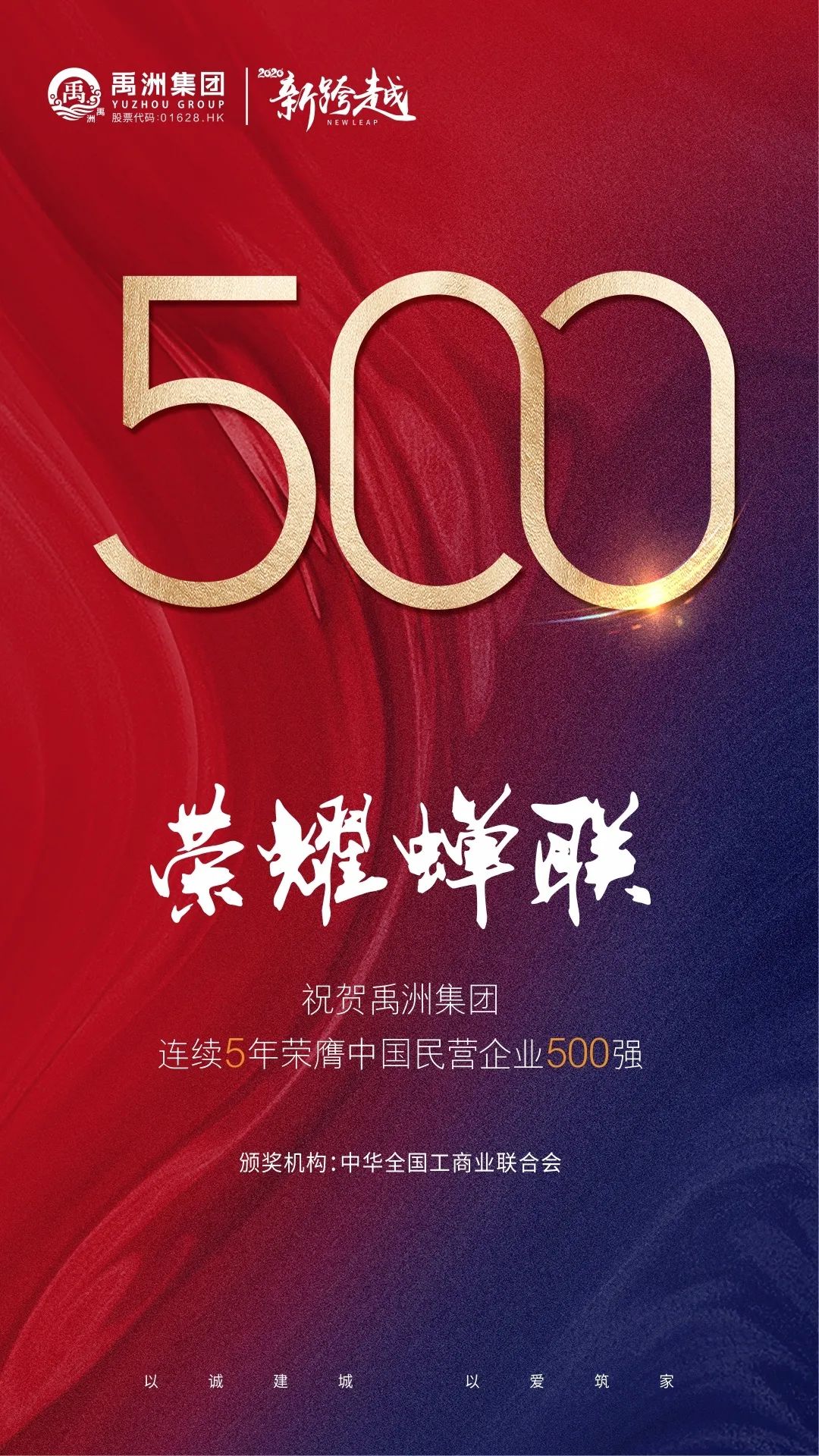 連續(xù)5年!禹洲集團(tuán)榮耀蟬聯(lián)中國(guó)民營(yíng)企業(yè)500強(qiáng)
