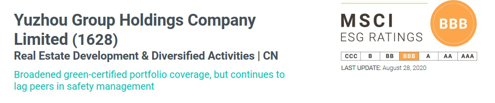 ▲禹洲集團(tuán)榮獲MSCI公司BBB的ESG評級