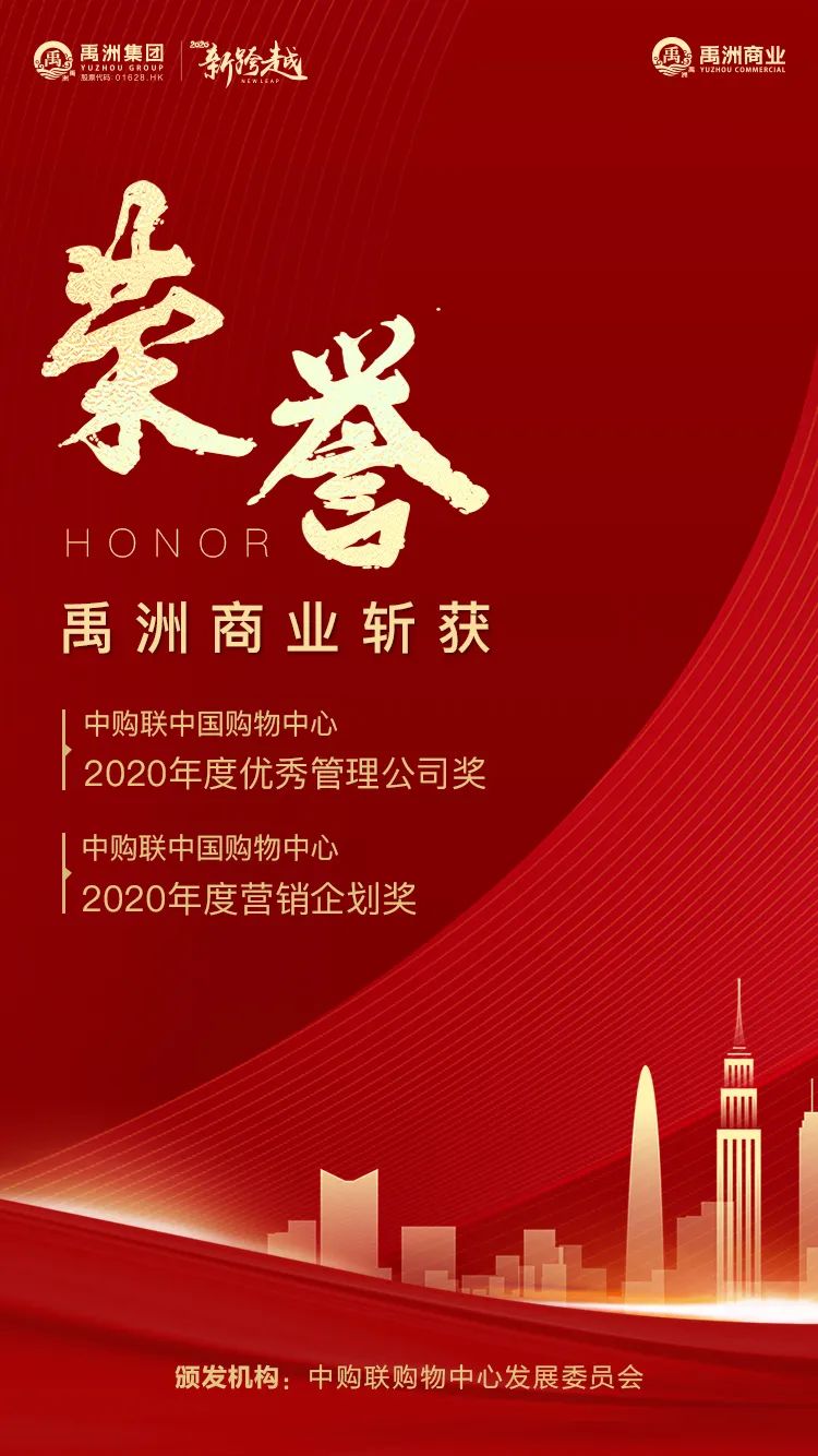 除了卓越的產(chǎn)品力,堅持多元化發(fā)展的禹洲在商業(yè)方面也備受市場認可。在2020年亞洲購物中心發(fā)展合作大會暨中購聯(lián)中國購物中心國際論壇第十八屆年會上,集團憑借出色的運營能力斬獲“2020年度優(yōu)秀商業(yè)管理公司獎”,上海禹洲商業(yè)廣場憑借出色的策劃創(chuàng)新能力,榮獲“2020年度營銷企劃獎”。一舉斬獲兩項權威大獎,是對禹洲商業(yè)實力的高度認可。
