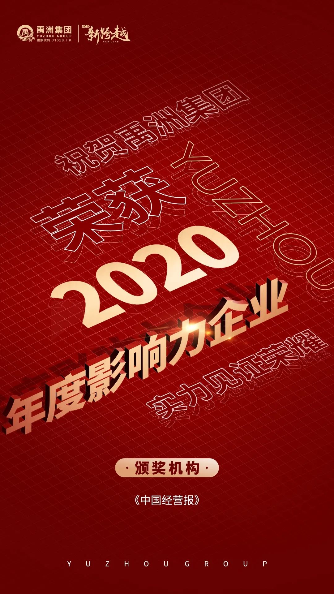 榮譽(yù) | 禹洲集團(tuán)榮獲“2020年度影響力企業(yè)”