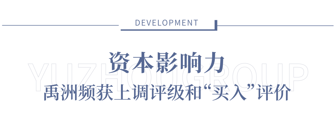 與此同時(shí),高盛、花旗、中信里昂、匯豐、摩根士丹利、星展等30家境內(nèi)外知名投行一直看好禹洲發(fā)展?jié)摿?,紛紛調(diào)高目標(biāo)價(jià),并給予禹洲“買入”或“跑贏大勢”評(píng)價(jià)。