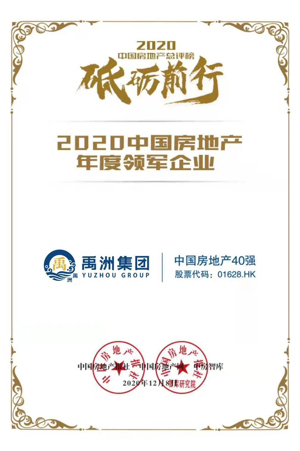 榮譽(yù) | 禹洲集團(tuán)榮獲“2020中國(guó)房地產(chǎn)年度領(lǐng)軍企業(yè)”