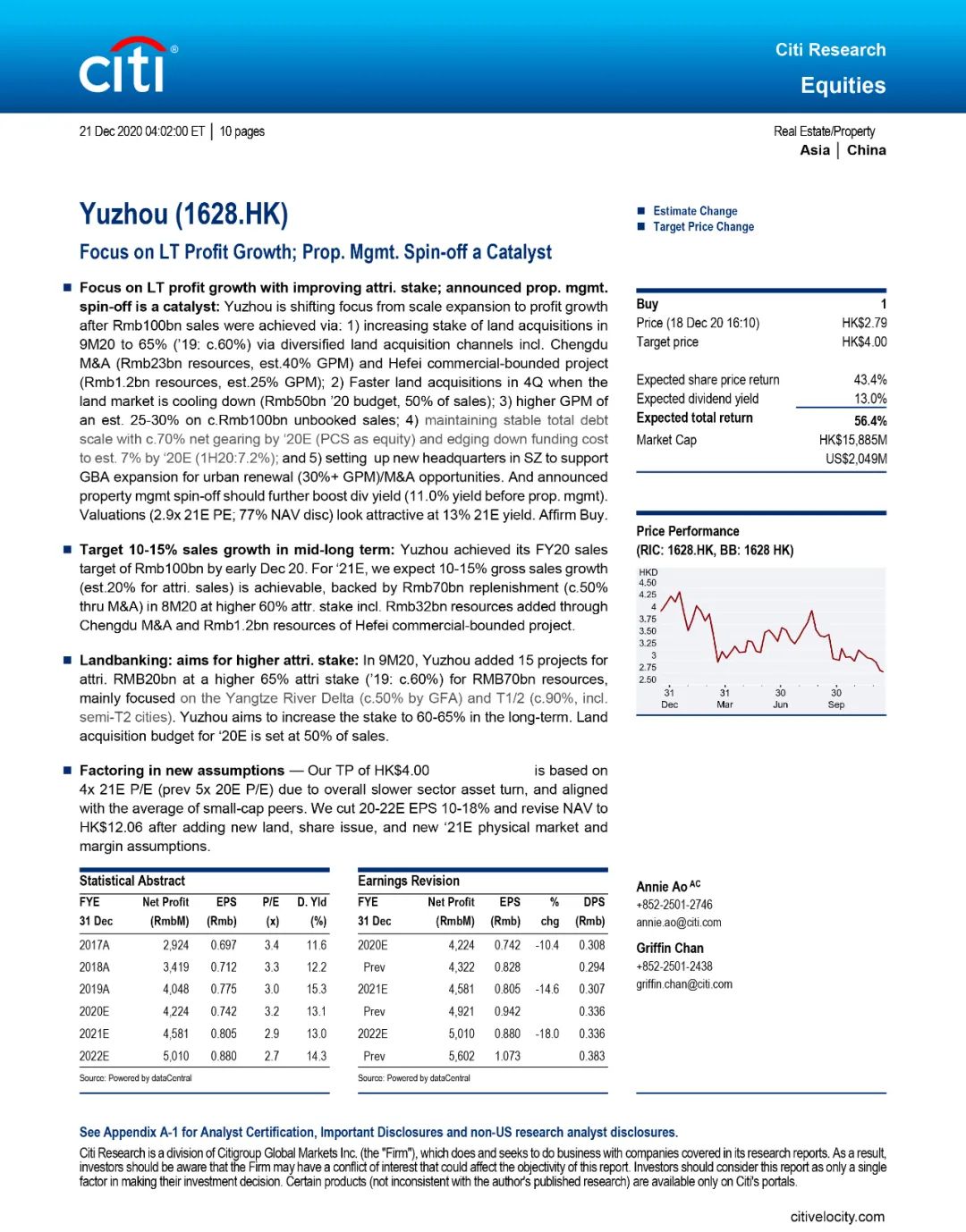 花旗 | 看好禹洲集團(01628.HK)長期利潤增長,物管業(yè)務將成全新增長極,重申“買入”評級