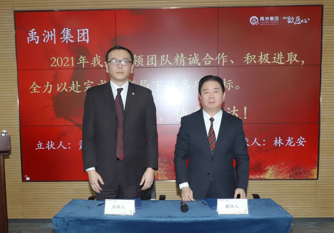 執(zhí)行總裁蕭睿代表管理層與董事局主席林龍安簽訂目標(biāo)責(zé)任書