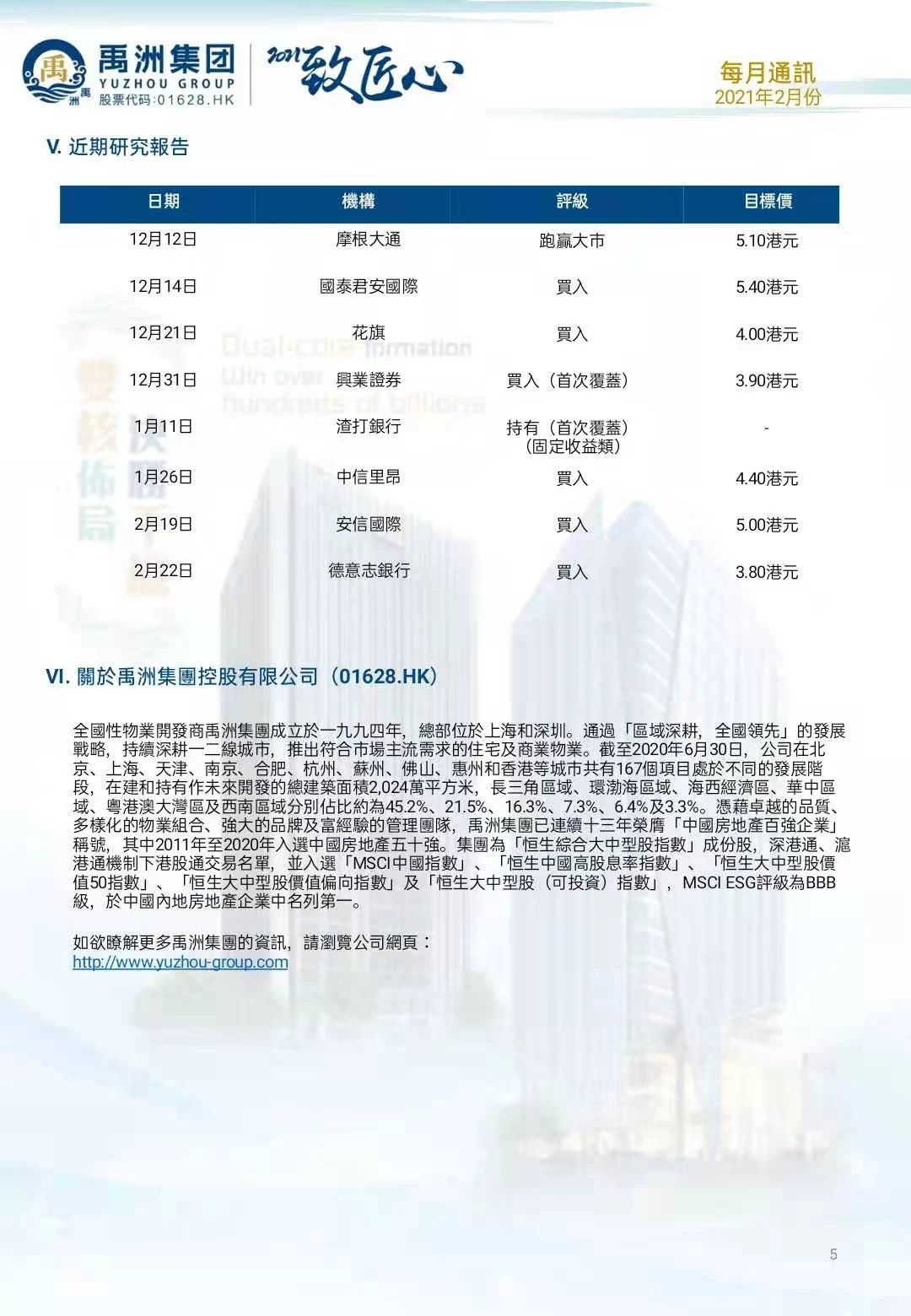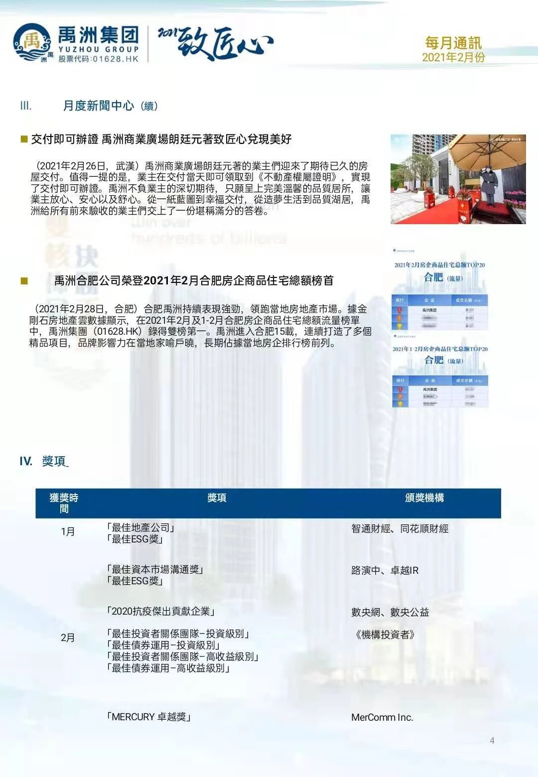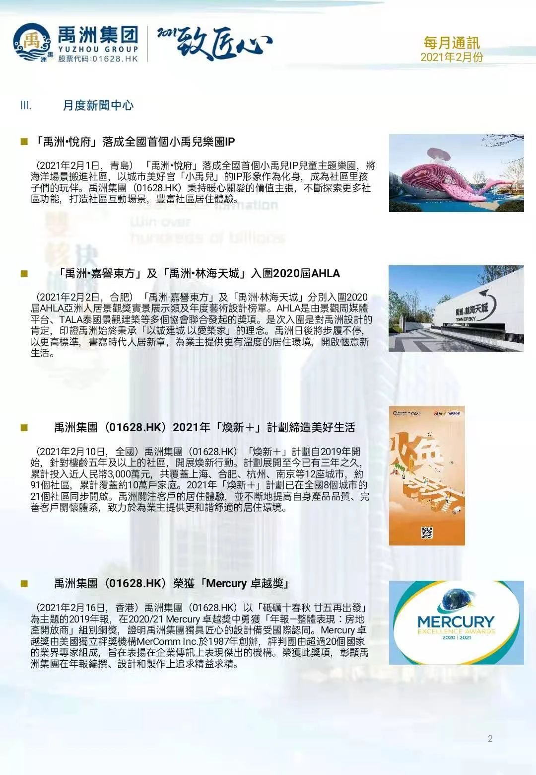 2021年2月,禹洲集團(tuán)實(shí)現(xiàn)合約銷售金額為人民幣57.51億元,同比增長378.45%,合約銷售面積為324,356平方米,合約銷售均價約為人民幣17,732元/平方米。