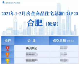 優(yōu)質(zhì)匠心的產(chǎn)品力及備受市場認(rèn)可的品牌影響力,助力禹洲實(shí)現(xiàn)銷售強(qiáng)勁增長。在合肥,禹洲持續(xù)表現(xiàn)強(qiáng)勁,領(lǐng)跑當(dāng)?shù)胤康禺a(chǎn)市場。據(jù)金剛石房地產(chǎn)云數(shù)據(jù)顯示,在2021年2月及1-2月合肥房企商品住宅總額流量榜單中,禹洲集團(tuán)錄得雙榜第一。禹洲進(jìn)入合肥15載,已連續(xù)打造了多個精品項(xiàng)目,品牌影響力在當(dāng)?shù)丶矣鲬魰?,長期占據(jù)當(dāng)?shù)胤科笈判邪袂傲小?/p>
