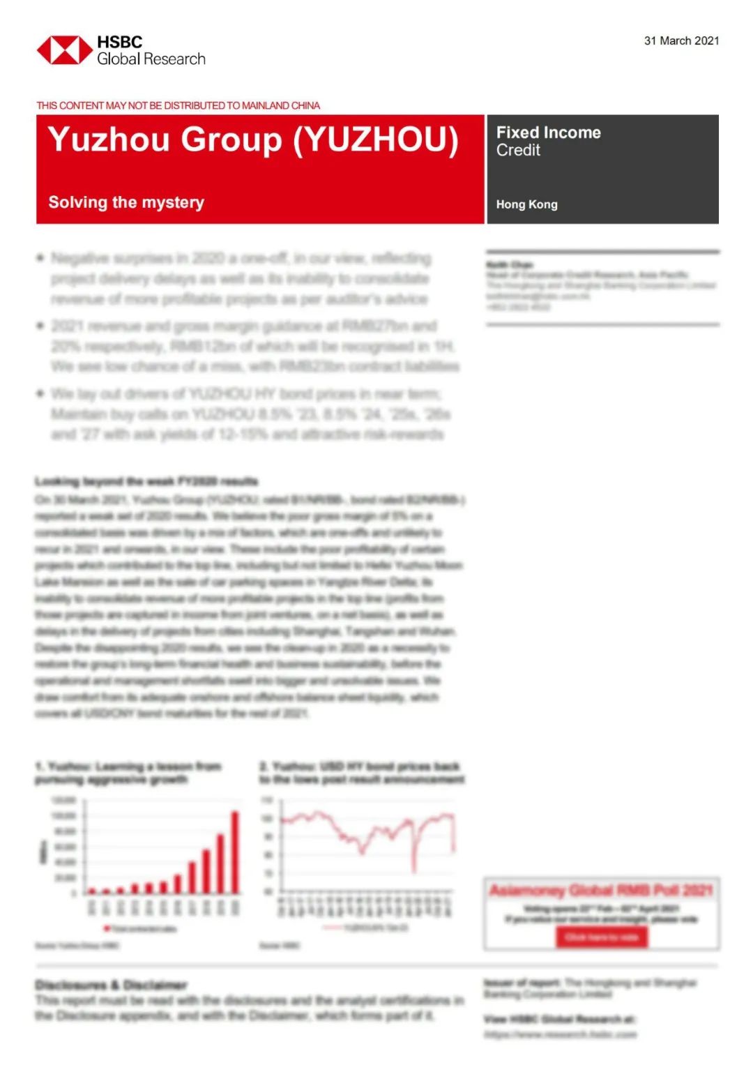 禹洲2020年合約銷售額達(dá)人民幣1,050億元,凈資產(chǎn)人民幣343億元,現(xiàn)金及現(xiàn)金等價物約人民幣345億元,合約負(fù)債達(dá)人民幣230億元,同比顯著增長;匯豐認(rèn)為,禹洲在岸和離岸資產(chǎn)負(fù)債表流動性充足,該流動性能夠很好地覆蓋2021年剩余時間到期的所有美元及人民幣債券。