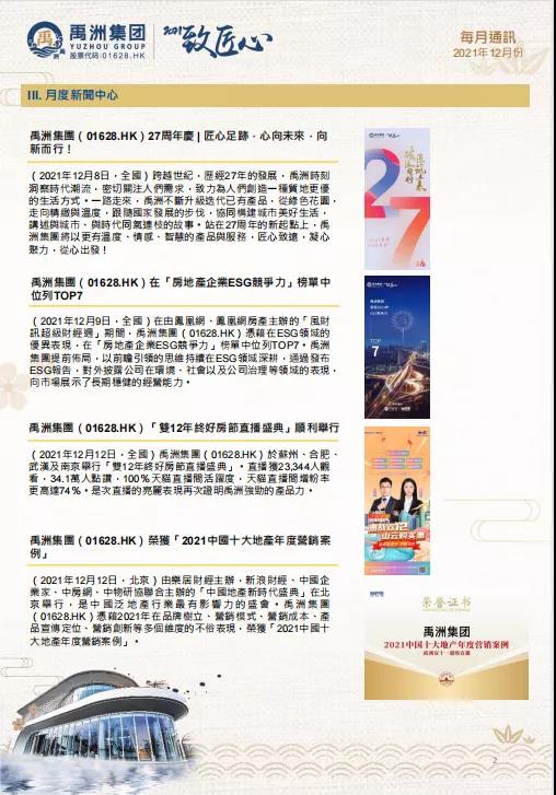 12月29日,由Roadshow China路演中、卓越IR主辦的第五屆卓越IR頒獎盛典在深圳舉行,禹洲集團獲得“2021中國上市公司-路演熱度榜TOP10”大獎。