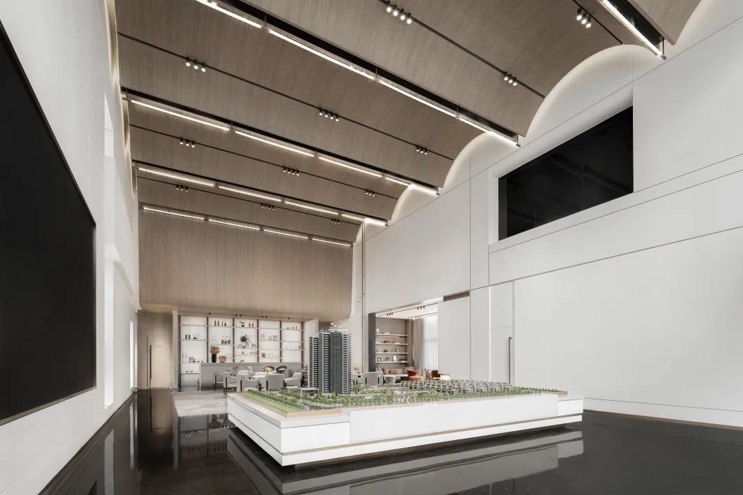 營(yíng)銷中心前場(chǎng)則給人眼前無(wú)限開(kāi)闊的感覺(jué),在飄渺的云煙中忽遠(yuǎn)忽近,若即若離,設(shè)計(jì)師希望通過(guò)更加廣闊的空間,令業(yè)主和來(lái)訪者都能看水天相接,無(wú)邊無(wú)垠。