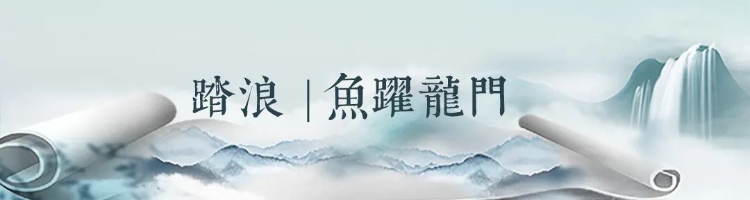 一條魚(yú)尾自水面破浪而出,揚(yáng)起的浪花徐徐落下,化成藍(lán)色漸變鋪灑在魚(yú)尾上,帶來(lái)生機(jī)與活力,預(yù)示著乘風(fēng)破浪的靈動(dòng)與活力。