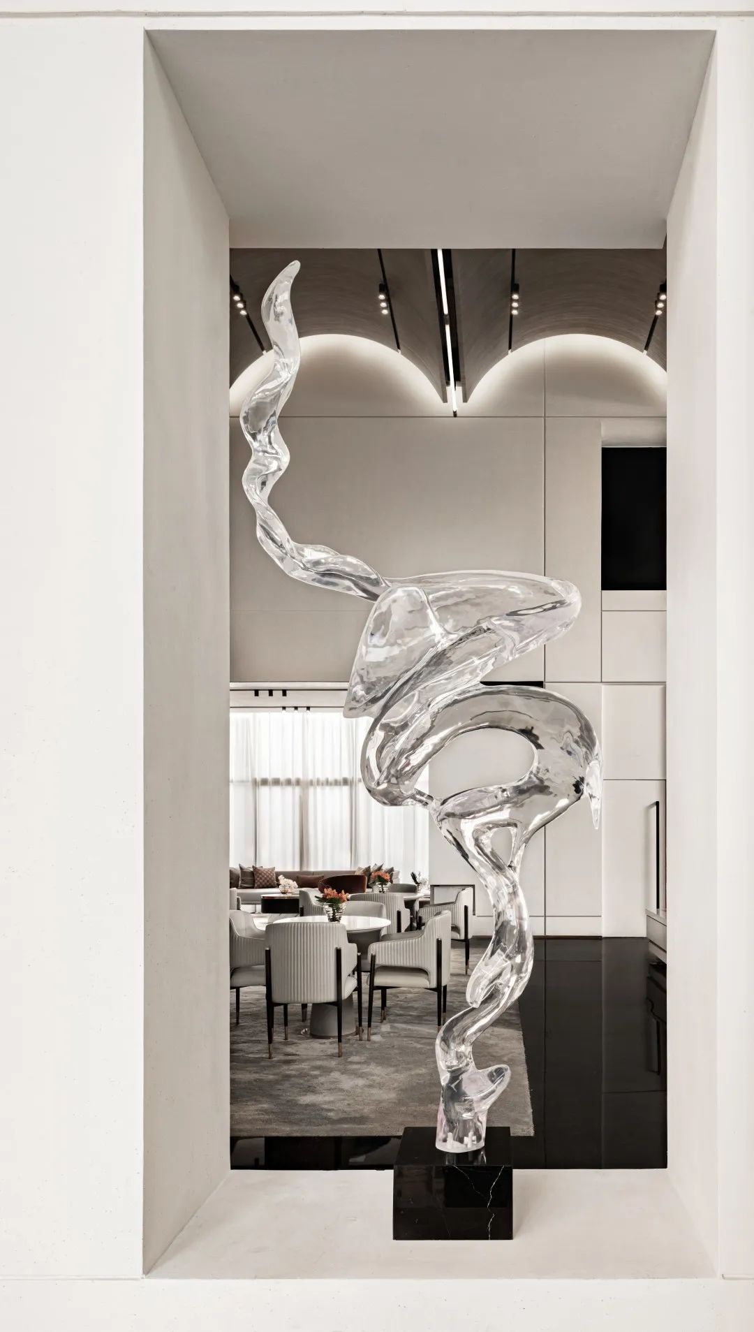 從純粹的白云與水流中汲取靈感,流動(dòng)、純澈的精神從天空中流瀉而下。一股圣潔凈化的靈魂力量悄然孕育,為人們創(chuàng)造出一片遠(yuǎn)離塵世的藝術(shù)場(chǎng)域。